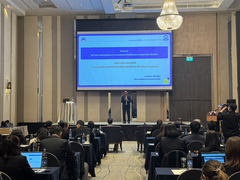 เมื่อวันที่ 4 ธันวาคม 2568 กองทุนประกันชีวิตได้จัดโครงการ “สร้างความร่วมมือระหว่างกองทุนประกันชีวิตและภาคธุรกิจประกันชีวิต” ณ โรงแรม จุบีลี เพรสทีจน์ รัชดาภิเษก โดยมีผู้เข้าร่วมโครงการฯ เป็น ผู้บริหารและเจ้าหน้าที่จากภาคธุรกิจประกันชีวิต ตลอดจนสมาคมประกันชีวิตไทย สมาคมตัวแทนประกันชีวิตและที่ปรึกษาทางการเงิน สมาคมนายหน้าประกันภัยไทย กองทุนประกันชีวิตและกองทุนประกันวินาศภัย รวมทั้งสื่อมวลชน