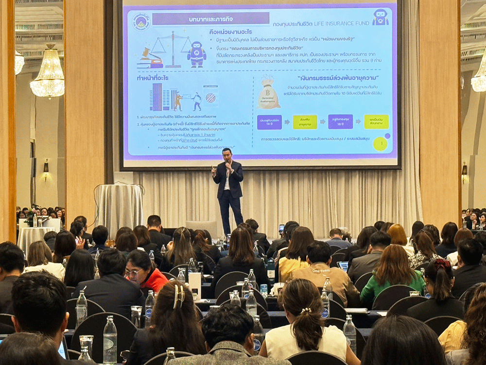 เมื่อวันที่ 18 สิงหาคม 2568 กองทุนประกันชีวิตเข้าร่วมออกบูธในงานวิชาการ THAIFA BOOSTER CLUB EP.7 ณ ห้องแกรนด์บอลรูม โรงแรมสวิสโซเทล รัชดา โดยนายนพพล เบี้ยวไข่มุข ผู้จัดการกองทุนประกันชีวิตได้มอบหมายให้นายกรัณย์ทัศ รักษ์ธรรมกิจ รักษาการหัวหน้าส่วนกลยุทธ์และส่งเสริมประชาสัมพันธ์ ร่วมขึ้นเวทีเพื่อให้ความรู้เกี่ยวกับภารกิจ บทบาทหน้าที่ของกองทุนประกันชีวิต และเงินกรมธรรม์ล่วงพ้นอายุความที่เป็นผลประโยชน์ที่เกิดจากการเอาประกันแก่ตัวแทนประกันชีวิตที่เข้าร่วมงานกว่า 300 คน เพื่อให้ตัวแทนประกันชีวิตช่วยเผยแพร่ความรู้ที่ได้รับต่อไปในวงกว้าง นอกจากนี้ยังมีกิจกรรมร่วมตอบแบบสอบถามความรู้เกี่ยวกับกองทุนประกันชีวิตเพื่อรับของที่ระลึกจากกองทุนประกันชีวิต ซึ่งกิจกรรมดังกล่าวได้รับความสนใจและผลตอบรับที่ดีจากผู้เข้าร่วมงานเป็นจำนวนมาก